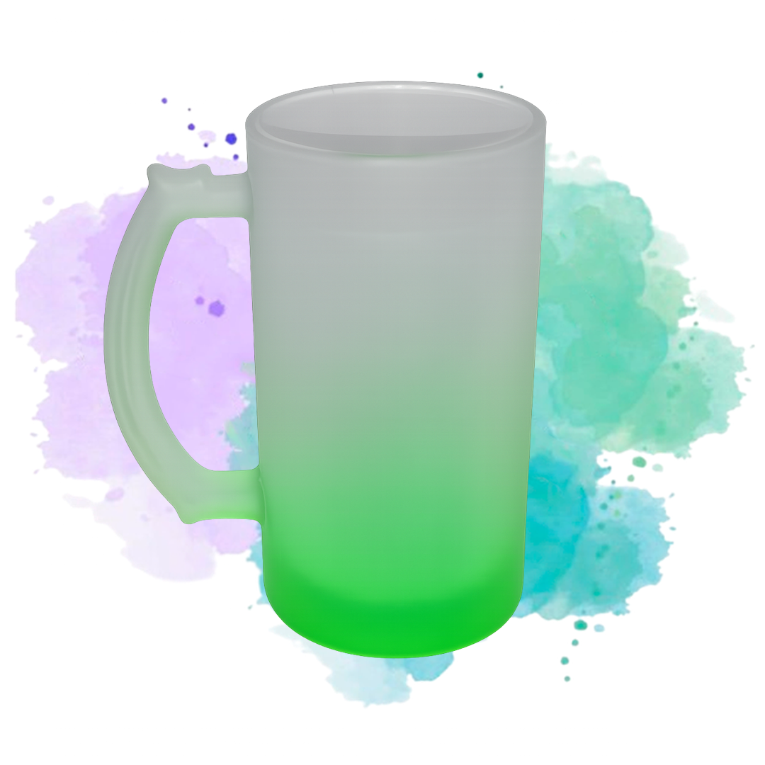 Chop cervecero de vidrio esmerilado con base en tono verde vibrante, ideal para disfrutar tus bebidas favoritas con estilo. Su acabado mate le da un toque moderno y elegante, mientras que el degradado verde aporta un detalle llamativo y original.