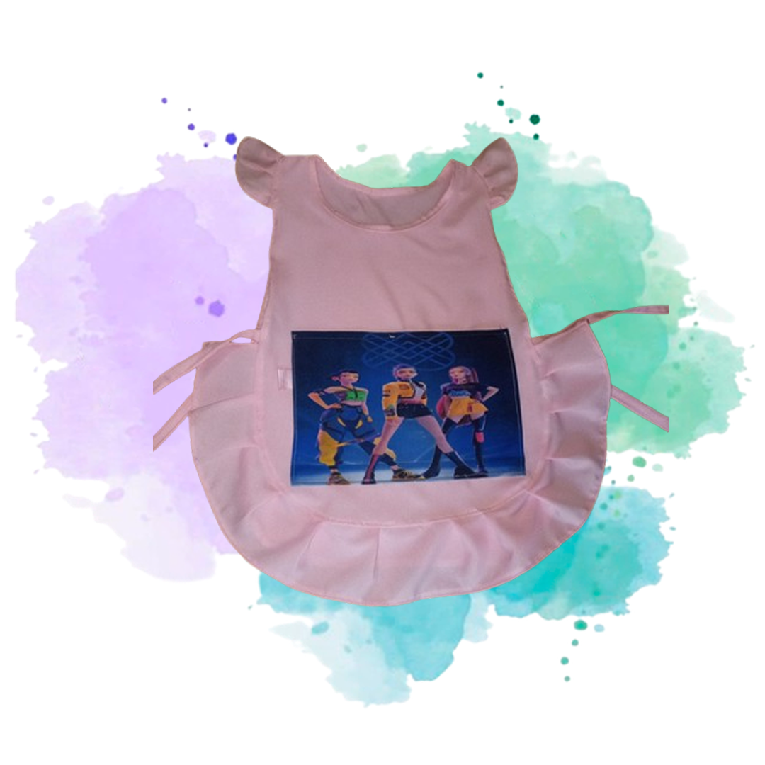 Delantal infantil en rosa pastel (rosa bebé), confeccionado en tela suave y resistente, ideal para jardín, actividades escolares o momentos creativos en casa.